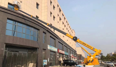 17.5米伸縮臂登高車酒店開業外墻高空作… -